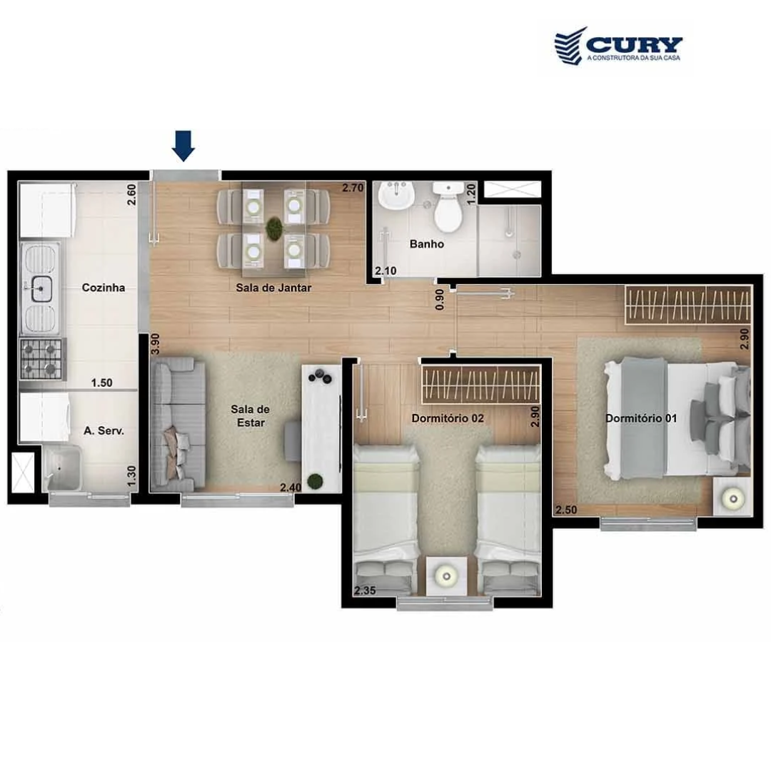 40 M² - 02 DORM - CURY